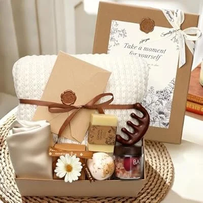 Get 50% OFF with PROMO CODE 9G248QBS on this Spa Gift Basket that includes a soft knitted blanket, a soothing daisy aromatherapy tablet, a luxurious bath bomb, bath salts, a handmade soap, a satin bonnet, massage comb, a beautiful greeting card + wax seal stamp envelope, and a wax seal stamp gift box. Valid through 04/12.