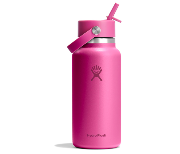 Hydroflask Water Bottle- Insulated Stainless Steal- Wide Mouth Flex Straw, Non-spill, Leakproof and refillable 32 oz in REEF PINK