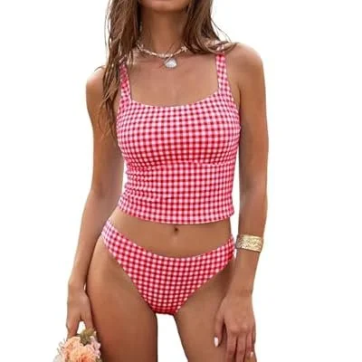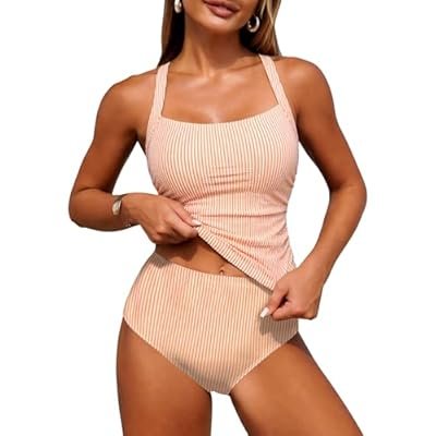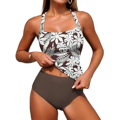 ZAFUL Women's Tankini Swimsuits Tummy Control Swimwear Two Piece Bathing Suits Swim Top with High Waisted Bottom