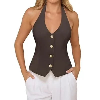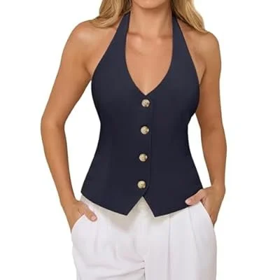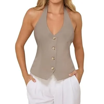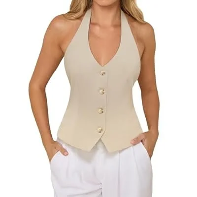 PINKMSTYLE Women's Halter V Neck Suit Vest Top Summer Trendy Sleeveless Button Down Blazer Vest Business Casual Waistcoat