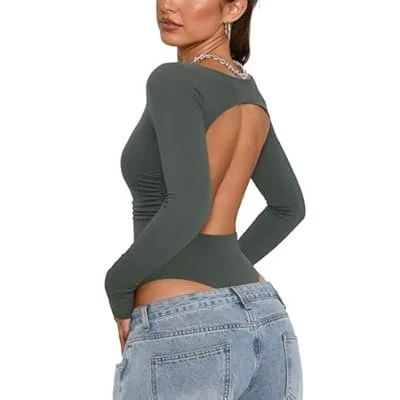 Open Back Long Sleeve Body Suit is 50% OFF with PROMO CODE!