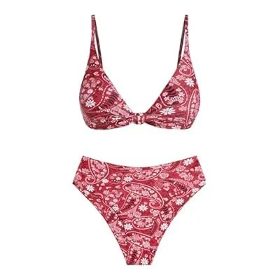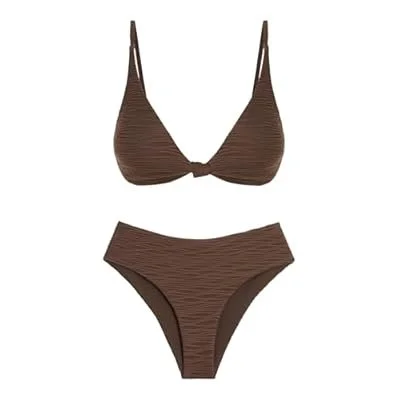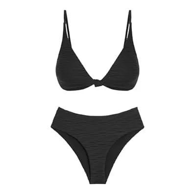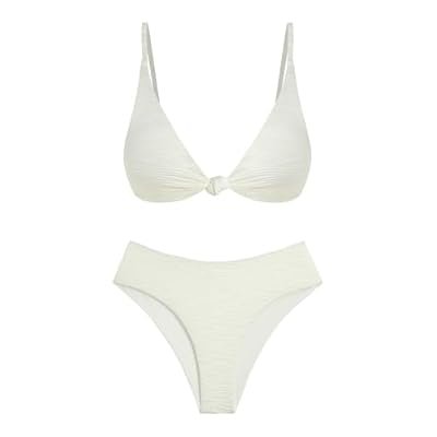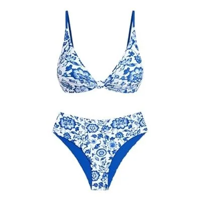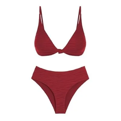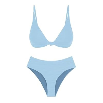 ZAFUL Bikini Set for Women V Neck Knot Front Push Up Bathing Suit High Cut Two Piece Swimsuit Brazilian Cheeky Swimwear)