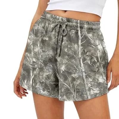 Camo Sweat Shorts for Women Drawstring Elastic Waist Maple Leaf Print Lounge Athletic Shorts with Pockets