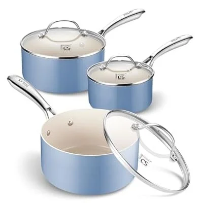 USE PROMO CODE to get 50% OFF of Nonstick Sauce Pans with Lids 1QT, 2QT & 3QT, Non-Toxic Ceramic Saucepan Set, Blue Sauce Pan Set, Multipurpose Cooking Pots Set, Compatible induction. Valid Through $79.99