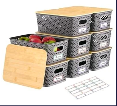 Get 8 Packs Plastic Storage Bins with Bamboo Lids - Stackable Storage for 50% OFF with PROMO CODE! Valid through 05/31.